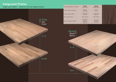 Finger-joint panels | Dužinsko-širinski lijepljene ploče Holzart / Wood species / Vrsta drva Oak / Hrast Beech / Bukva