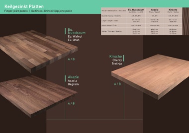 Finger-joint panels | Dužinsko-širinski lijepljene ploče Holzart / Wood species / Vrsta drva Eu. Nussbaum Acacia / Bagrem Cherry / Trešnja